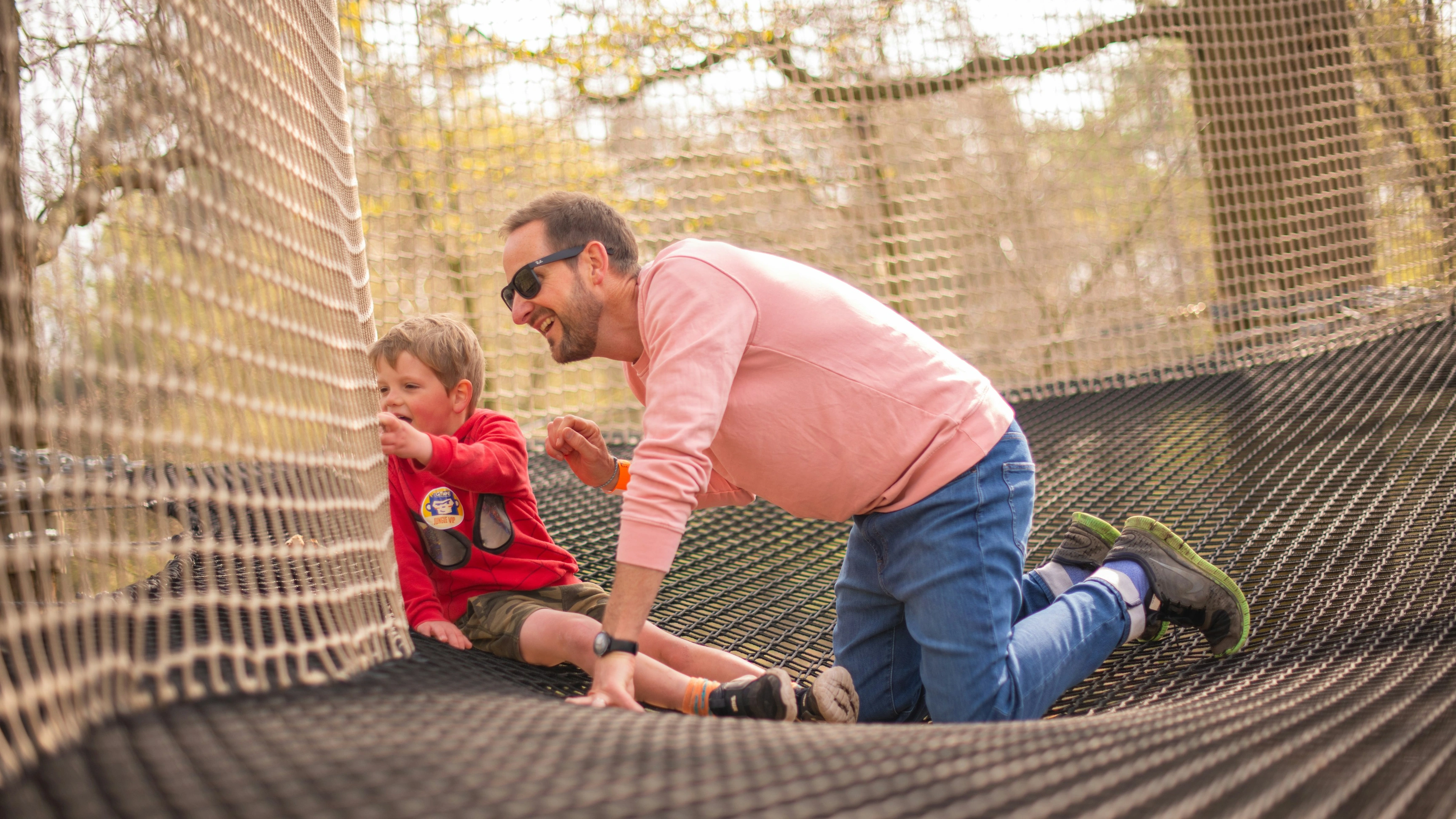 Designed with primary-school aged kids in mind, this experience suits everyone from younger ones to the young-at-heart. It’s open to children over 1 year old who can walk unaided. We regularly have toddlers who take part and have a great time, however, the experience may not be suitable when the course is occupied with lots of energetic older children. We endeavour to keep one tree top net to a more relaxed atmosphere, aiming for a safe and fun experience for toddlers. The first sessions in the morning, or last in the afternoon tend to be the quietest.