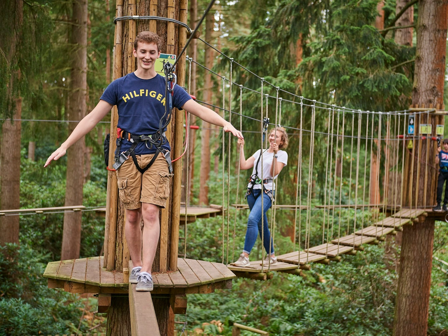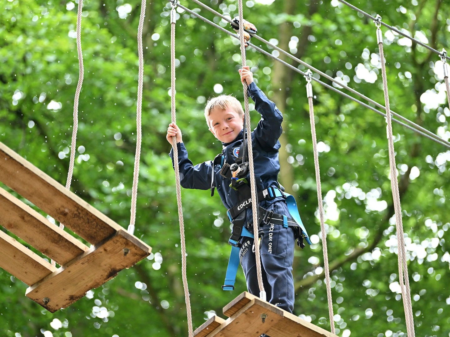 Our Continuous Belay system keeps you connected from start to finish. You’ll clip onto the safety line with a special trolley that only attaches and detaches on the ground — so once you’re up there, you stay secure the whole time. You’ll find this system on all Treetop Adventure, Treetop Adventure Plus, and Treetop Challenge Xpress courses — it’s simple, safe, and ideal for younger adventurers and families.
