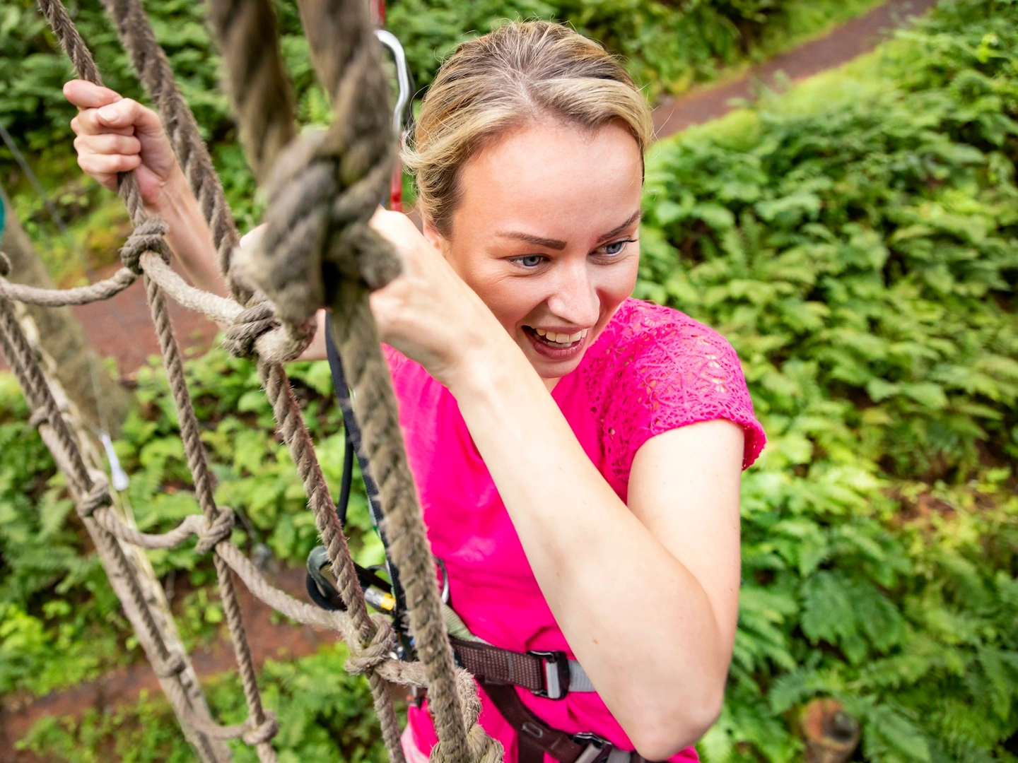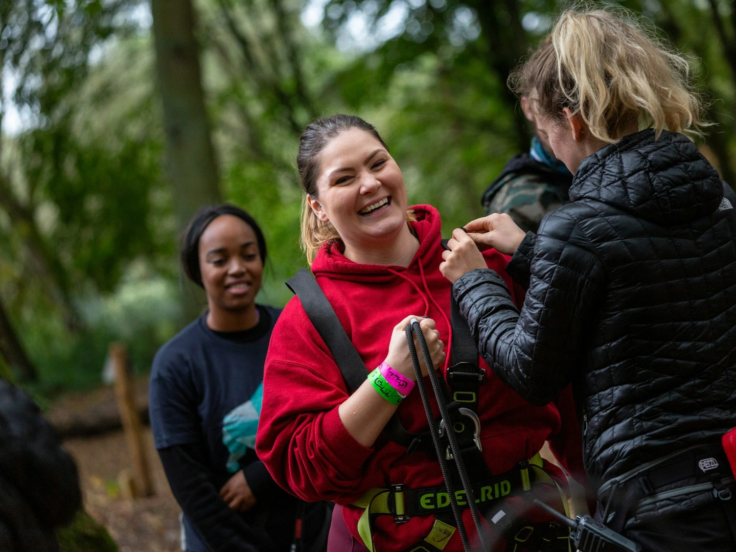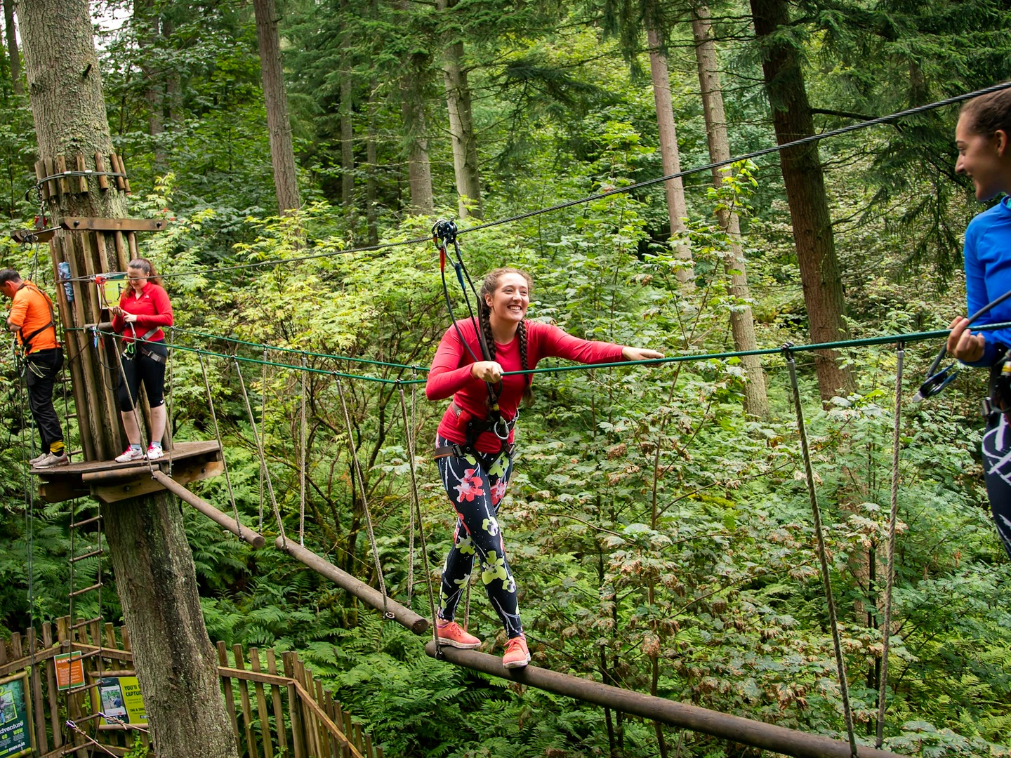 On the day, gather your tribe around fifteen minutes before your session. Make sure your risk acknowledgement is done (and yes, bathroom visits included). Dress for adventure — think comfy clothes that can handle a bit of forest flair. Costumes are welcome, but harnesses and helmets need a snug fit (#NoCapes). Closed-toe shoes are essential. After a short safety briefing from our brilliant instructors, it’s time to climb, swing, and laugh your way through the treetops.