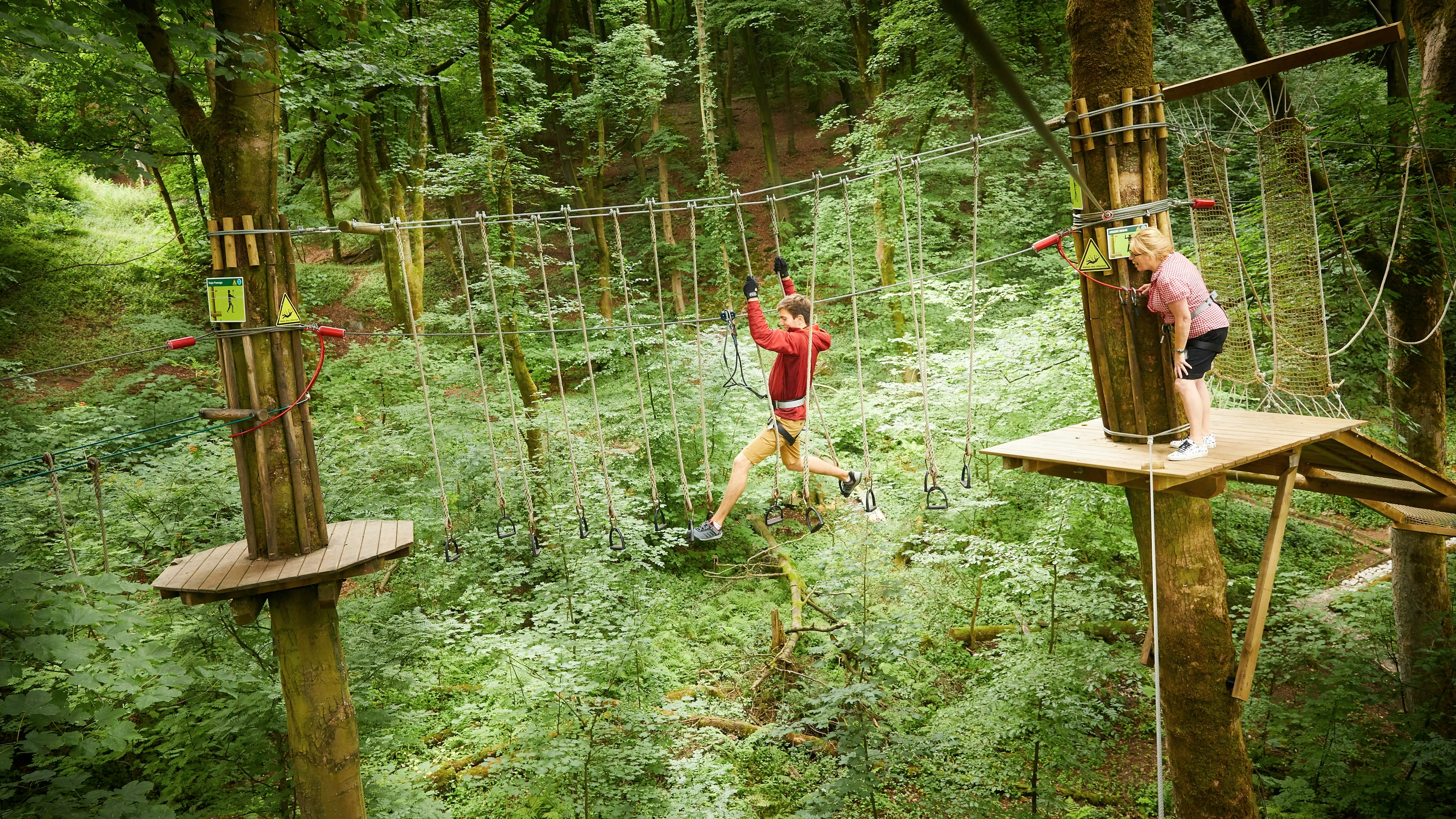 Featuring one of our biggest Tarzan Swing drops, you’ll step from the platform into an incredible free fall before being swung into our giant cargo net. Climb, leap and zip through the trees and soak in amazing views of Buxton town and the sprawling countryside below.